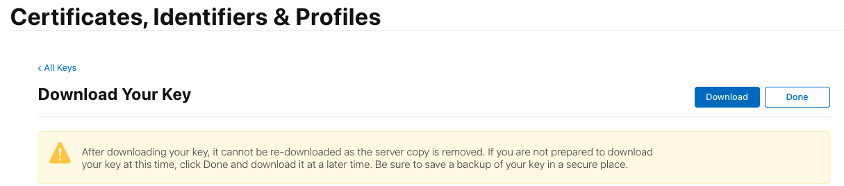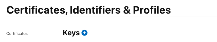 apple developer에 들어가서 Keys + 버튼 클릭