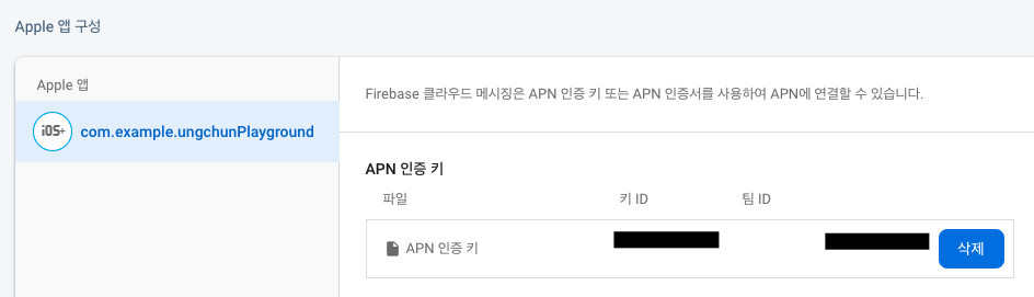 다운로드한 키를 firebase - 프로젝트 설정 - 클라우드 메시징 - apple 앱 구성에 등록