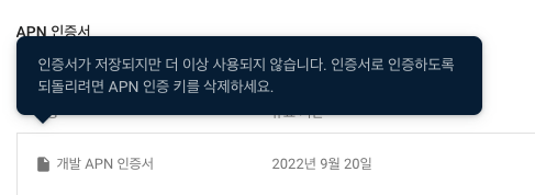 참고로 인증서, 인증키 두 개 다 등록하면 이런 알림이 뜹니다.