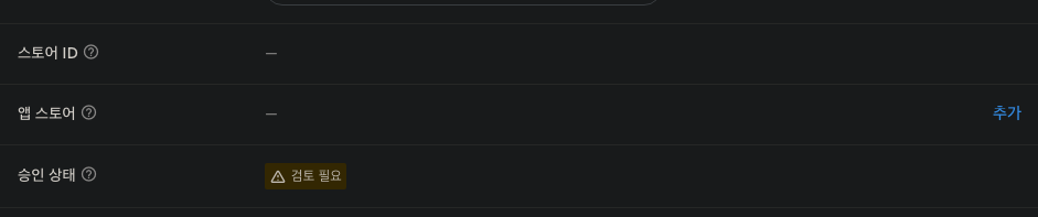 앱 스토어에 등록되지 않은 상태면 저렇게 검토가 필요하다고 떠있습니다. 앱 스토어 옆에 추가 버튼을 클릭해 주세요.
