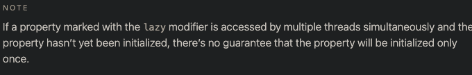 즉, 단일 스레드에서 lazy var에 접근하는 것을 보장할 수 없는 상황에서는 lazy var를 쓰면 안 됩니다.