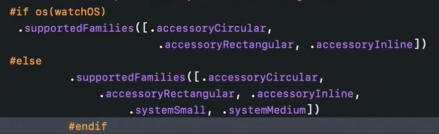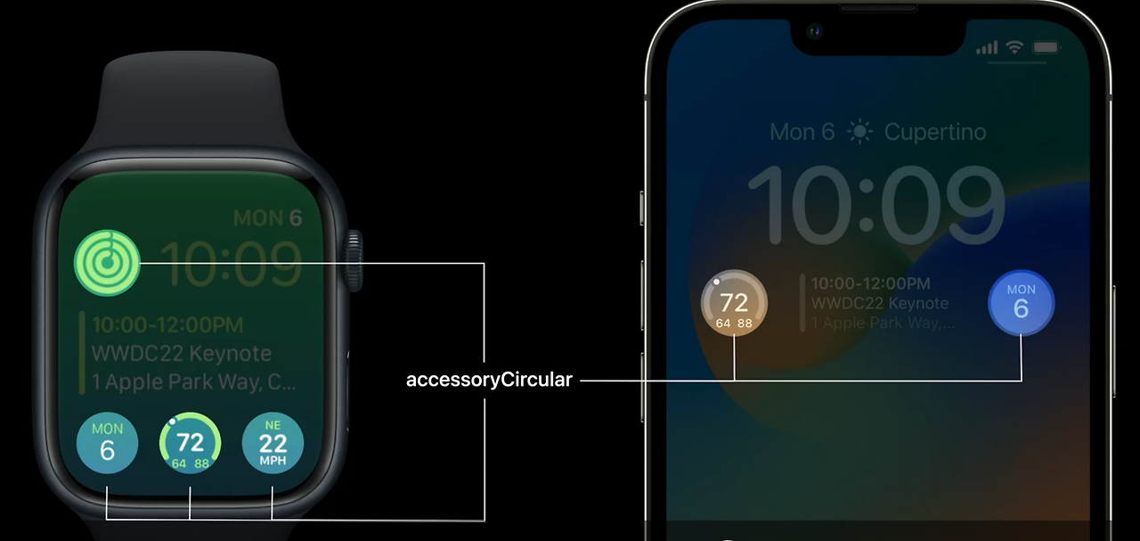 이제 iOS 16과 watchOS 9은 새롭게 추가된 WidgetFamily로 두 곳에서 모두 사용이 가능합니다. 하나의 코드로 기존 홈 화면 위젯과 워치 컴플리케이션을 구성할 수 있게 된 것이죠.