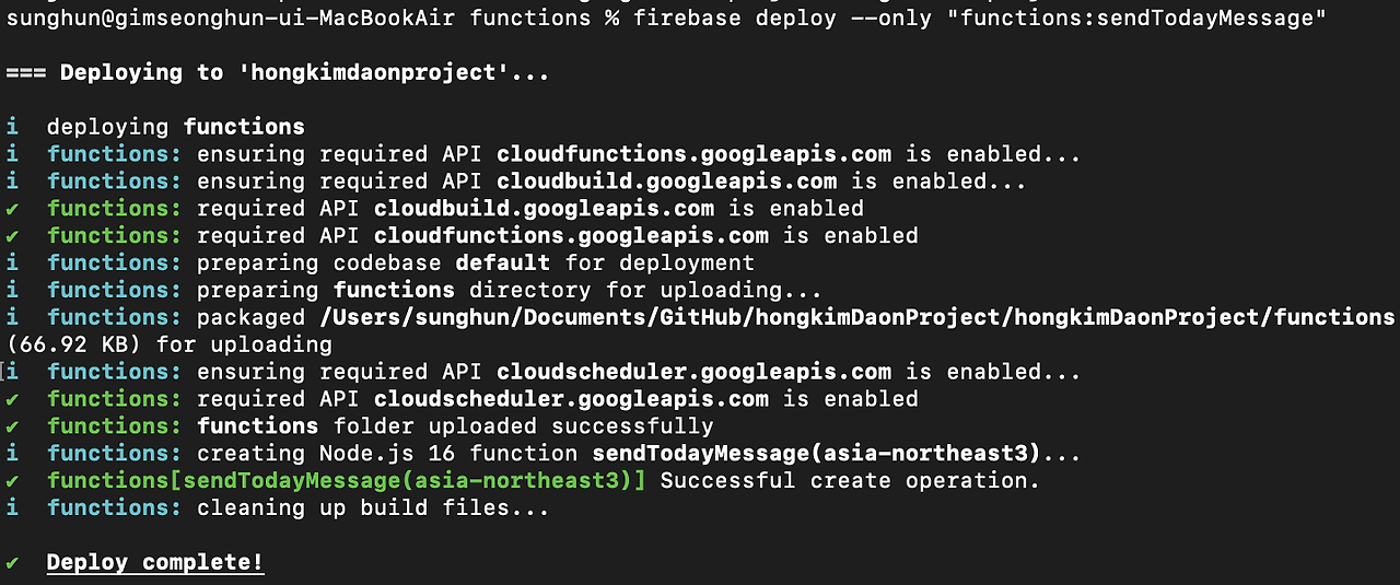 [Firebase] Cloud Functions 세팅 글을 참고하거나 구글링을 통해 세팅을 완료하고 다음으로 넘어가주세요.